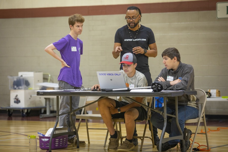 Three middle school and three high school teams competed in the event, held at Lindley Recreation Center in Greensboro. The teams and their coaches received all the materials needed to prepare for the competition, including drones and databots, programmable sensors that can be used with drones. On the day of the competition, they received instructions and participated in real-time coding. The teams then followed step-by-step instructions on flying and maneuvering their drones, earning points for the drones’ accuracy in following the commands.