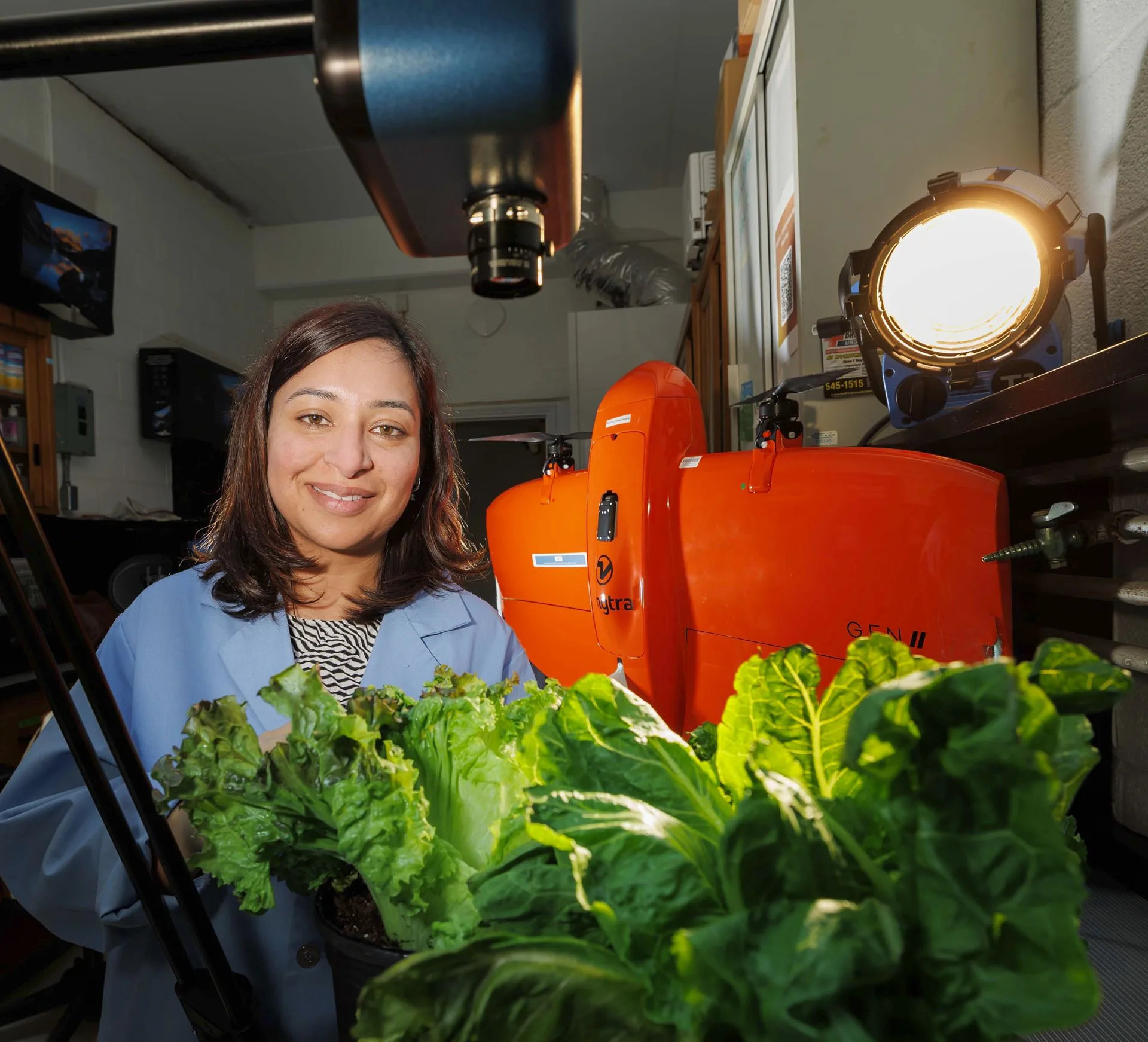 But for her latest project, Sharma will deploy her imaging equipment inside her Carver Hall lab. A U.S. Department Agriculture grant will help her create a database to help identify and predict cold-tolerant varieties of looseleaf lettuce.