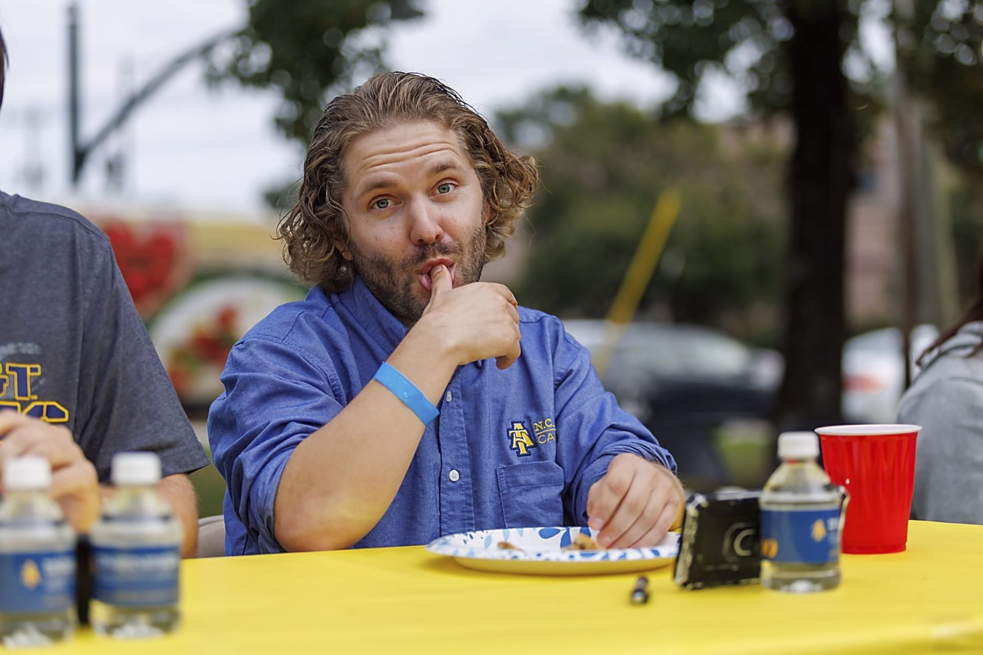 More than 700 CAES Aggie alumni gathered on the Webb Hall lawn on Friday, Oct. 10 for food, dancing, fellowship as part of N.C. A&T’s 99th Greatest Homecoming on Earth, and sixteen fearless Aggies sat down for the Poultry Club’s Hot Wings Challenge, sponsored by Mountaire Farms.