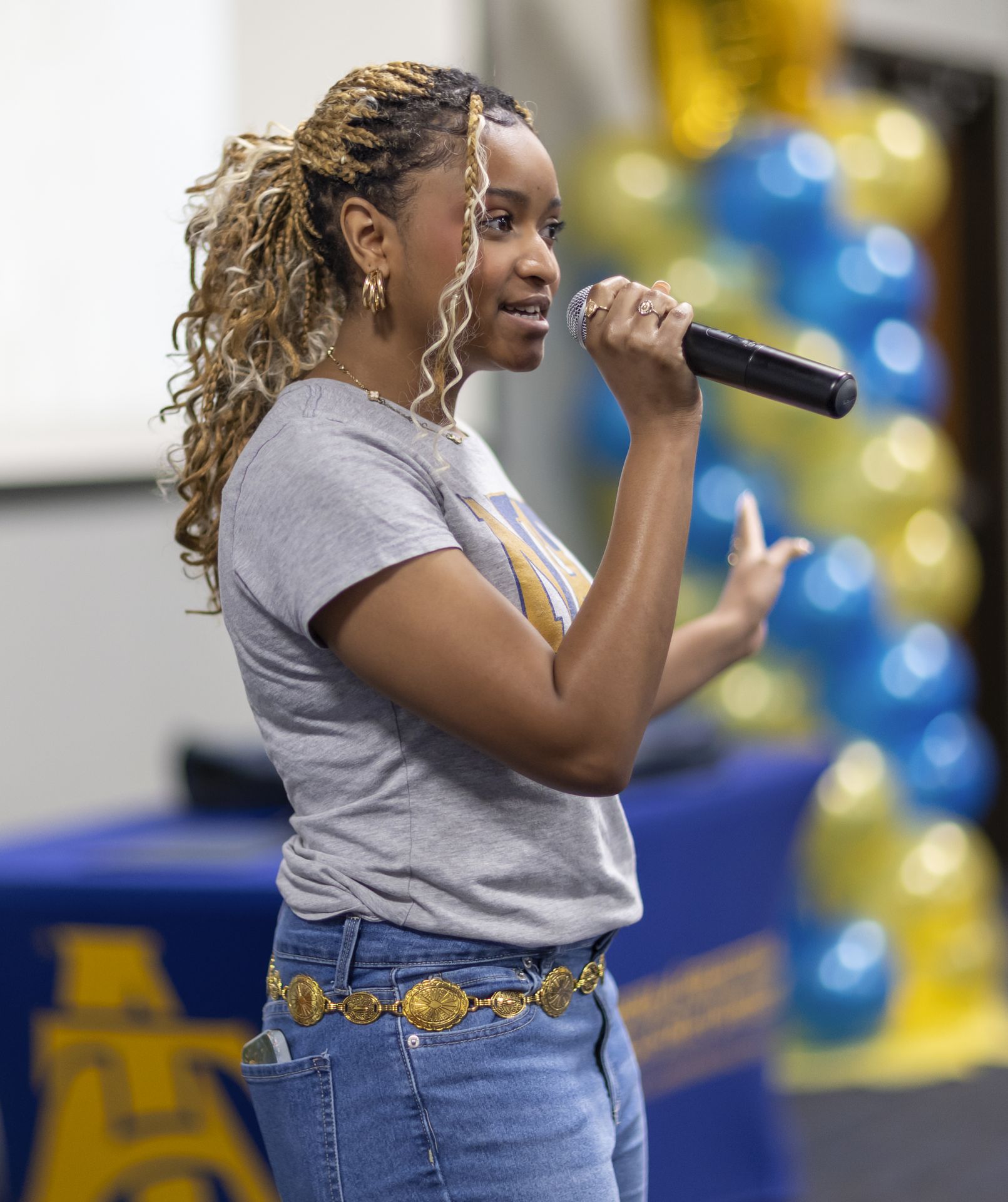 Unity Walters, a rising junior at Eastern Guilford High School in Gibsonville, researched ways to help children learn science, technology, engineering and mathematics (STEM) and encourage family engagement.