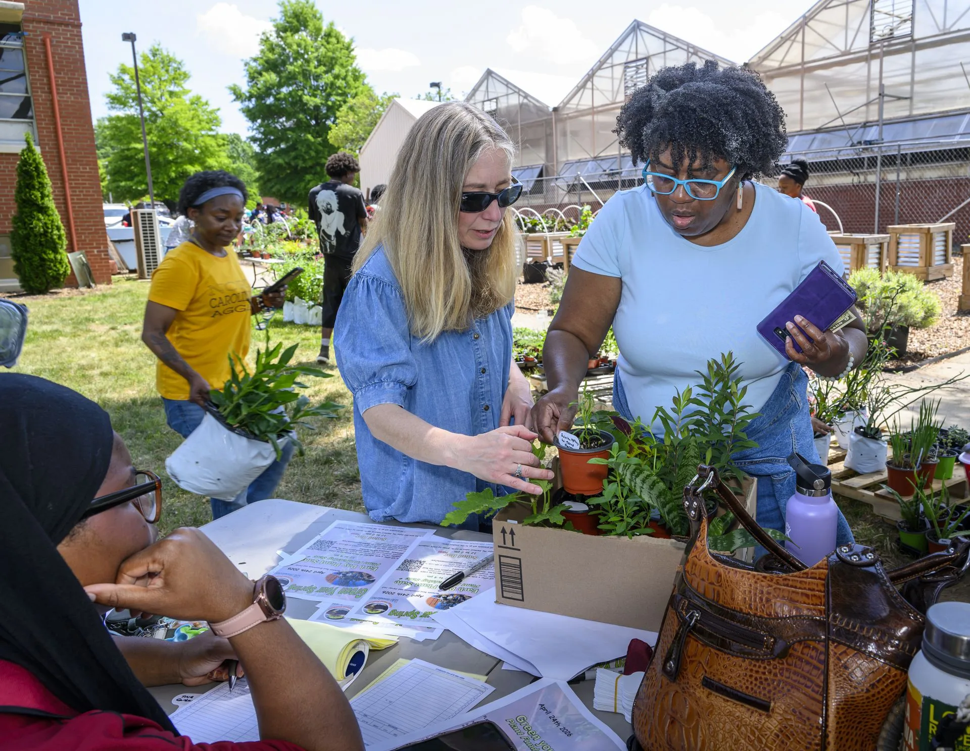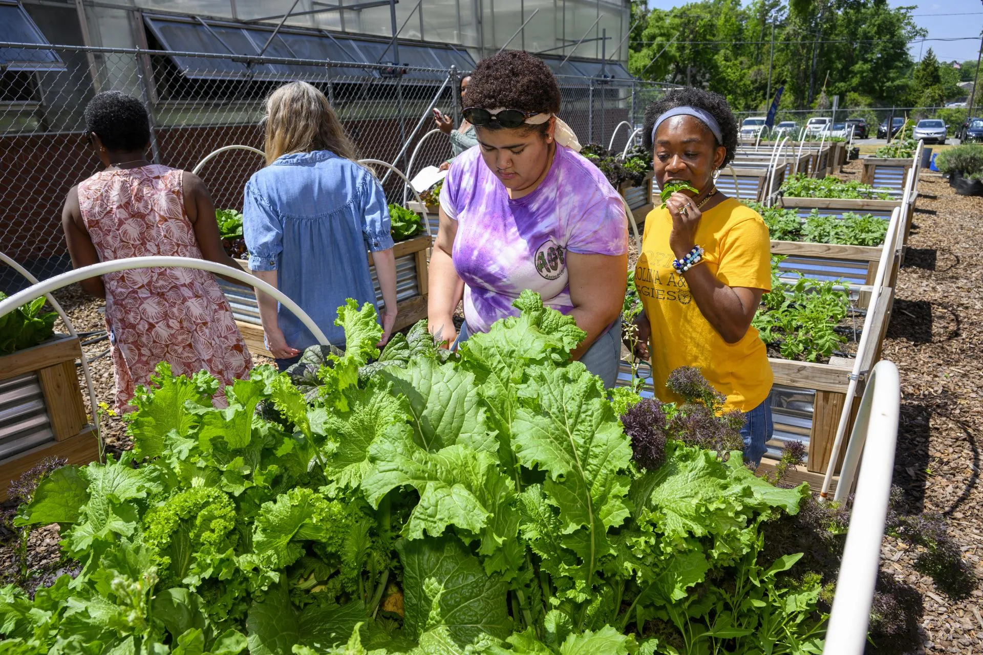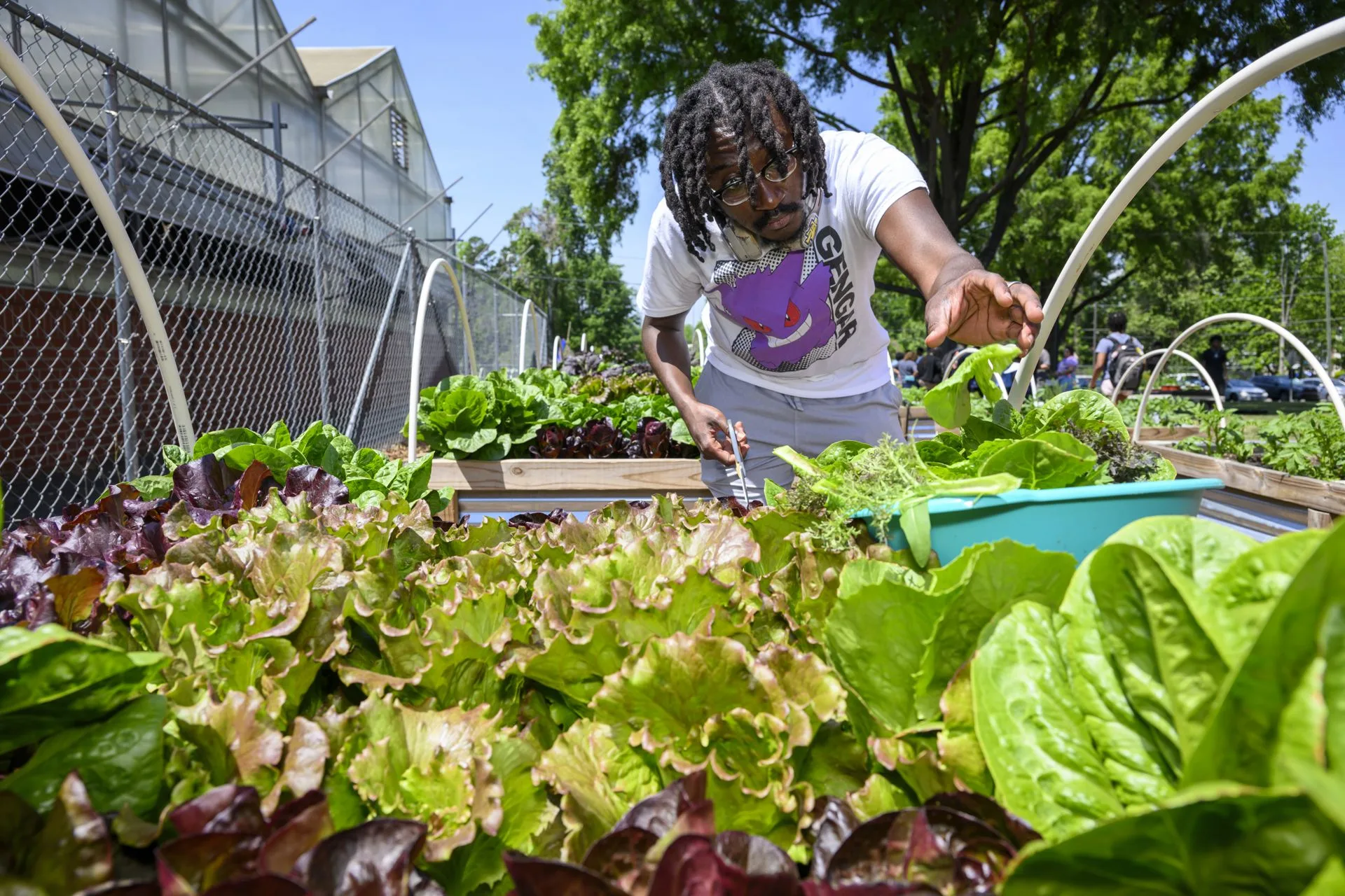 Students and staff alike came to the Reid Greenhouse and Carver Hall to enjoy the annual Earth Day Plant Sale and free salad bar, featuring a wide selection of plants grown by CAES students in Specialty Crops and Plant Propagation classes, and raises funds for the Student Farm. In addition to the sale, free pick-your-own salads, grown in the nearby raised beds, were available with dressing and croutons provided. Professor Odile Huchette, who leads the project, said the free salad day has been going on for eight years, and the plant sale was added during the COVID pandemic. As the students grow and share the various plants, Huchette says, it creates the opportunity to tie together education and community service.