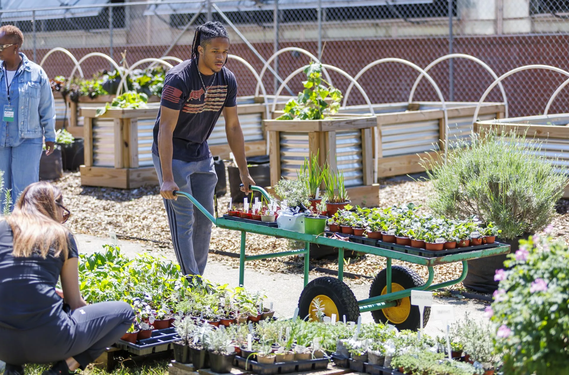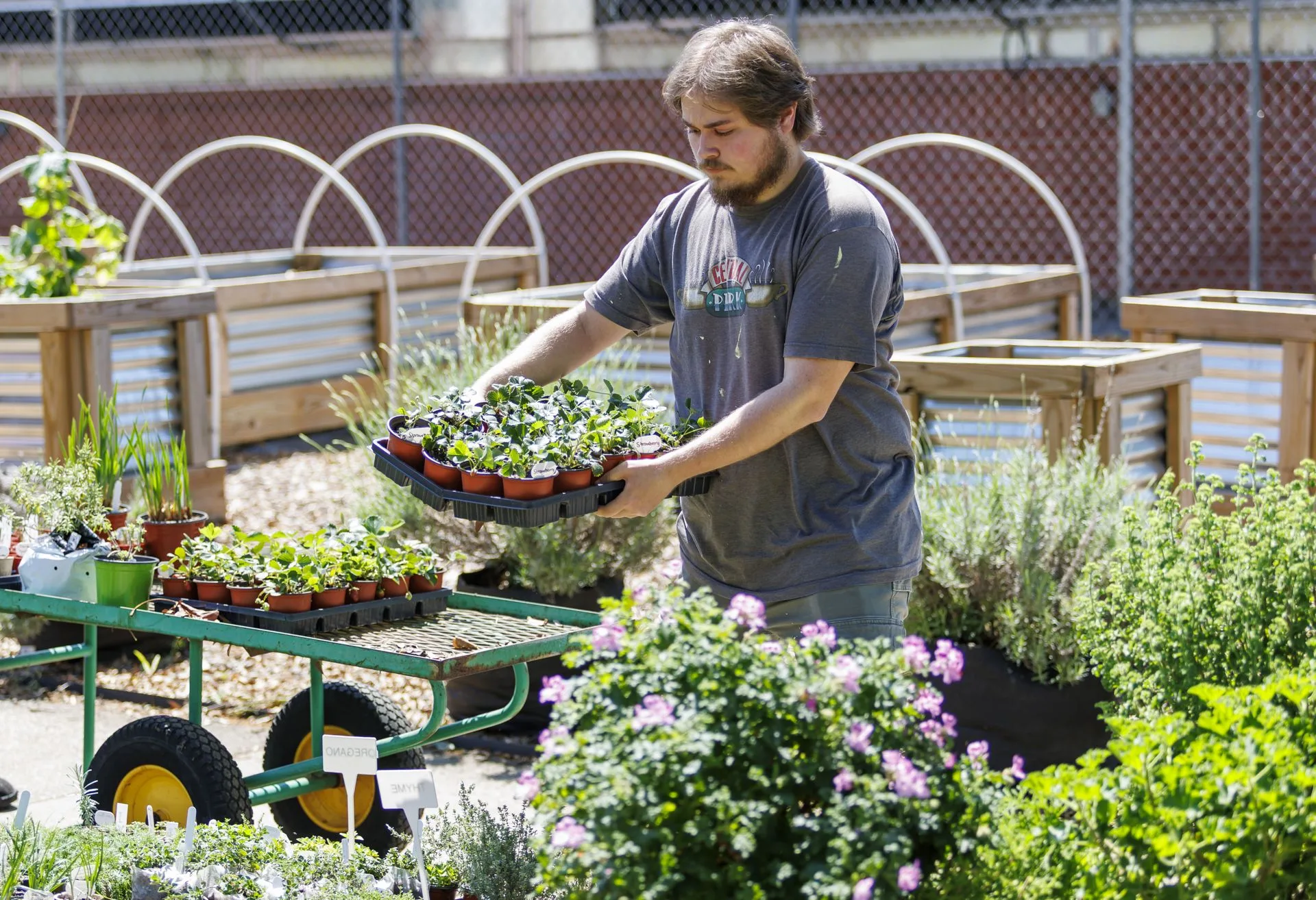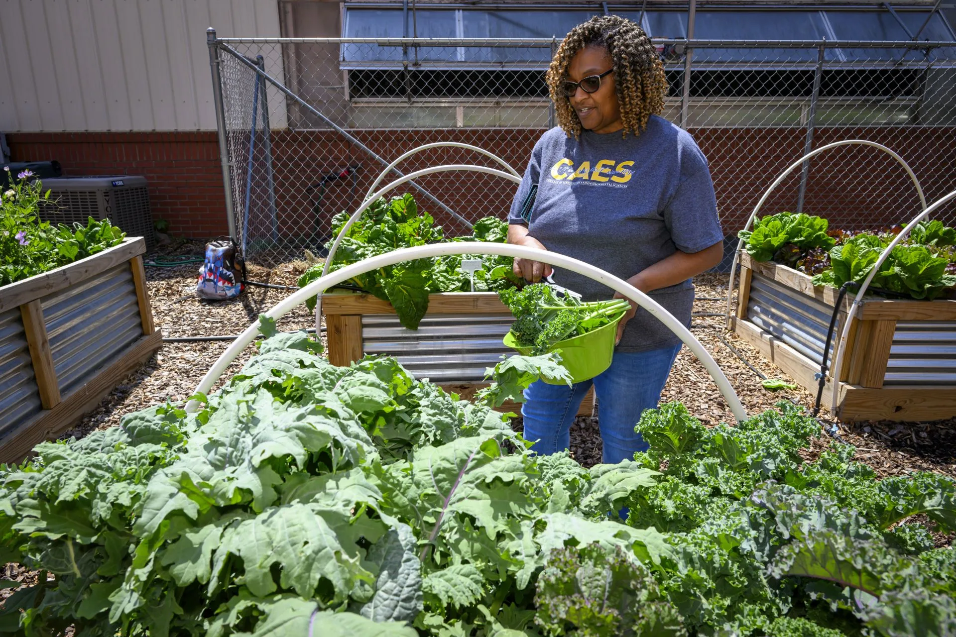 Students and staff alike came to the Reid Greenhouse and Carver Hall to enjoy the annual Earth Day Plant Sale and free salad bar, featuring a wide selection of plants grown by CAES students in Specialty Crops and Plant Propagation classes, and raises funds for the Student Farm. In addition to the sale, free pick-your-own salads, grown in the nearby raised beds, were available with dressing and croutons provided. Professor Odile Huchette, who leads the project, said the free salad day has been going on for eight years, and the plant sale was added during the COVID pandemic. As the students grow and share the various plants, Huchette says, it creates the opportunity to tie together education and community service.